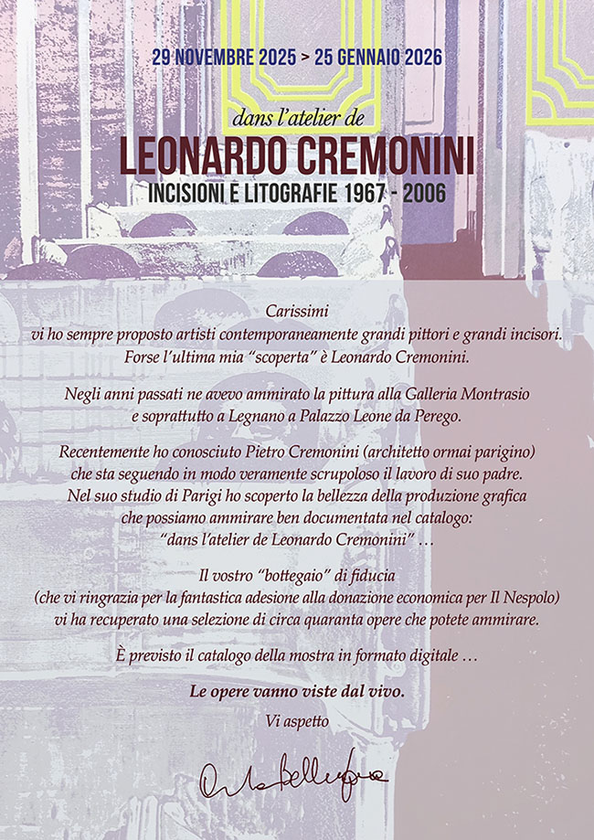 dans l'atelier de LEONARDO CREMONINI incisioni e litografie 1967 - 2006